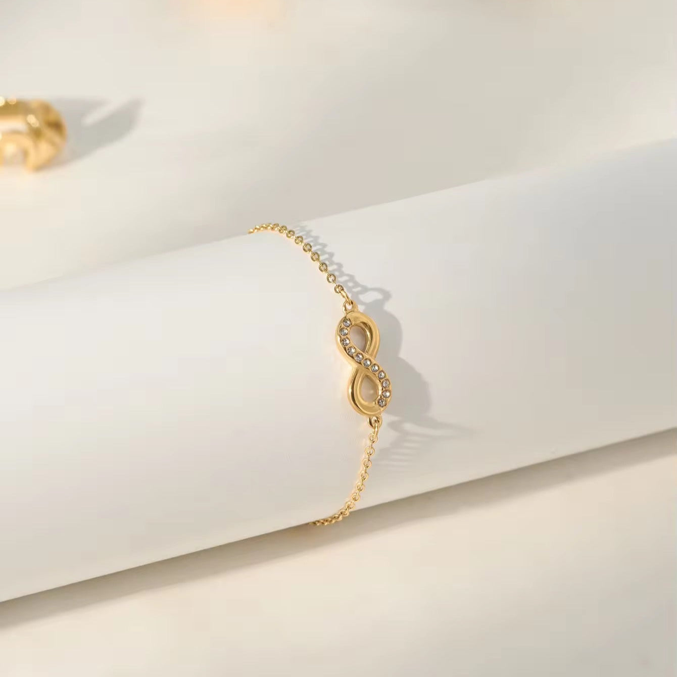 A symbol of endless connections and timeless elegance, the Forever Linked Bracelet features a delicate infinity charm on a sleek, dainty chain. Designed for effortless sophistication, this piece is perfect for everyday wear or layering with your favorite bracelets.